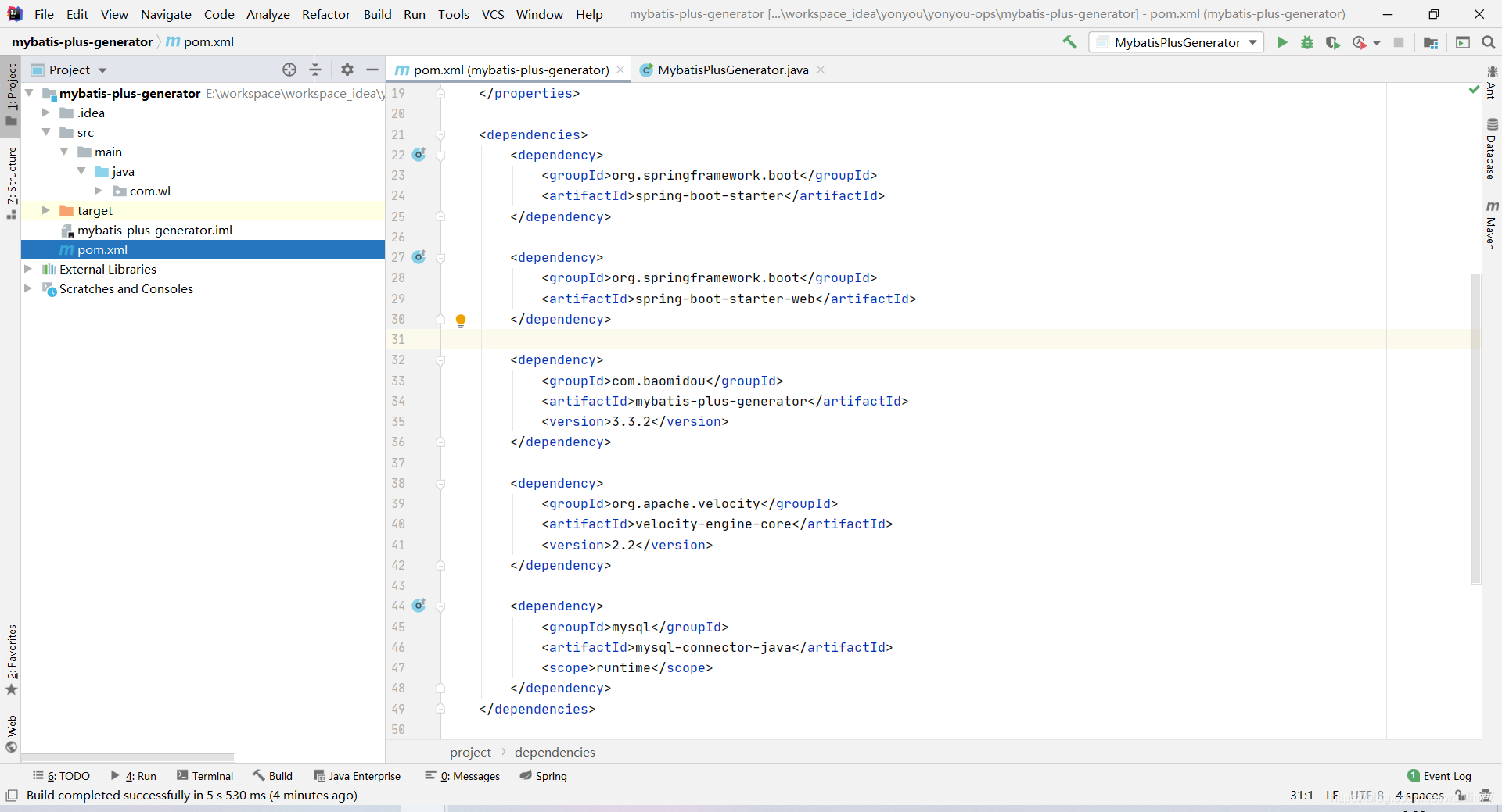 添加mybatis-plus-generator依赖,以及一些其他必要依赖:
