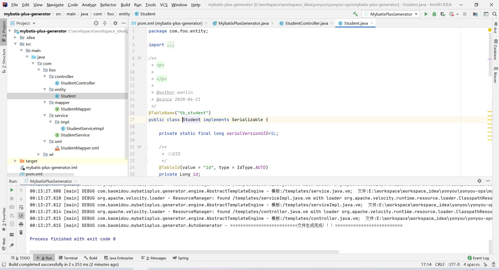 gc.setOutputDir(oPath + "/src/main/java"); //生成文件输出根目录