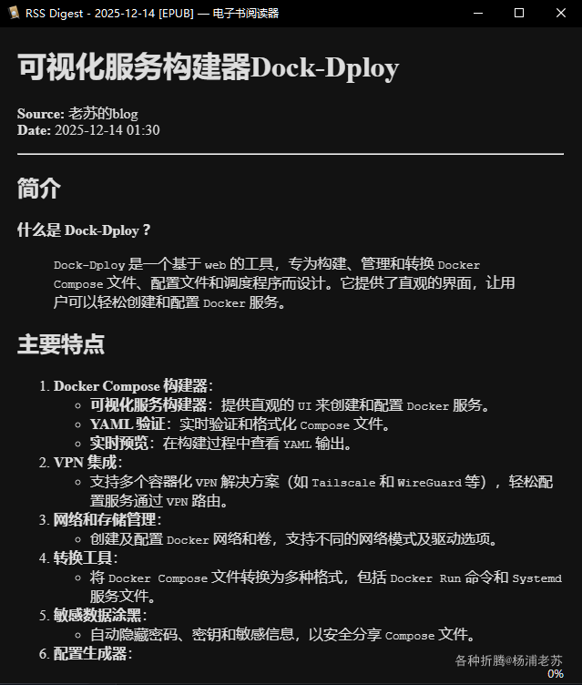 RSS/Atom订阅源内容。 - EPUB 生成:将抓取的文章编译成格式良好的