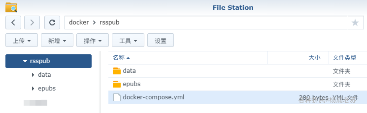 在 docker 文件夹中,创建一个新文件夹 rsspub,并在其中建一个子文件夹 data