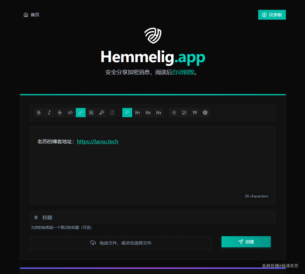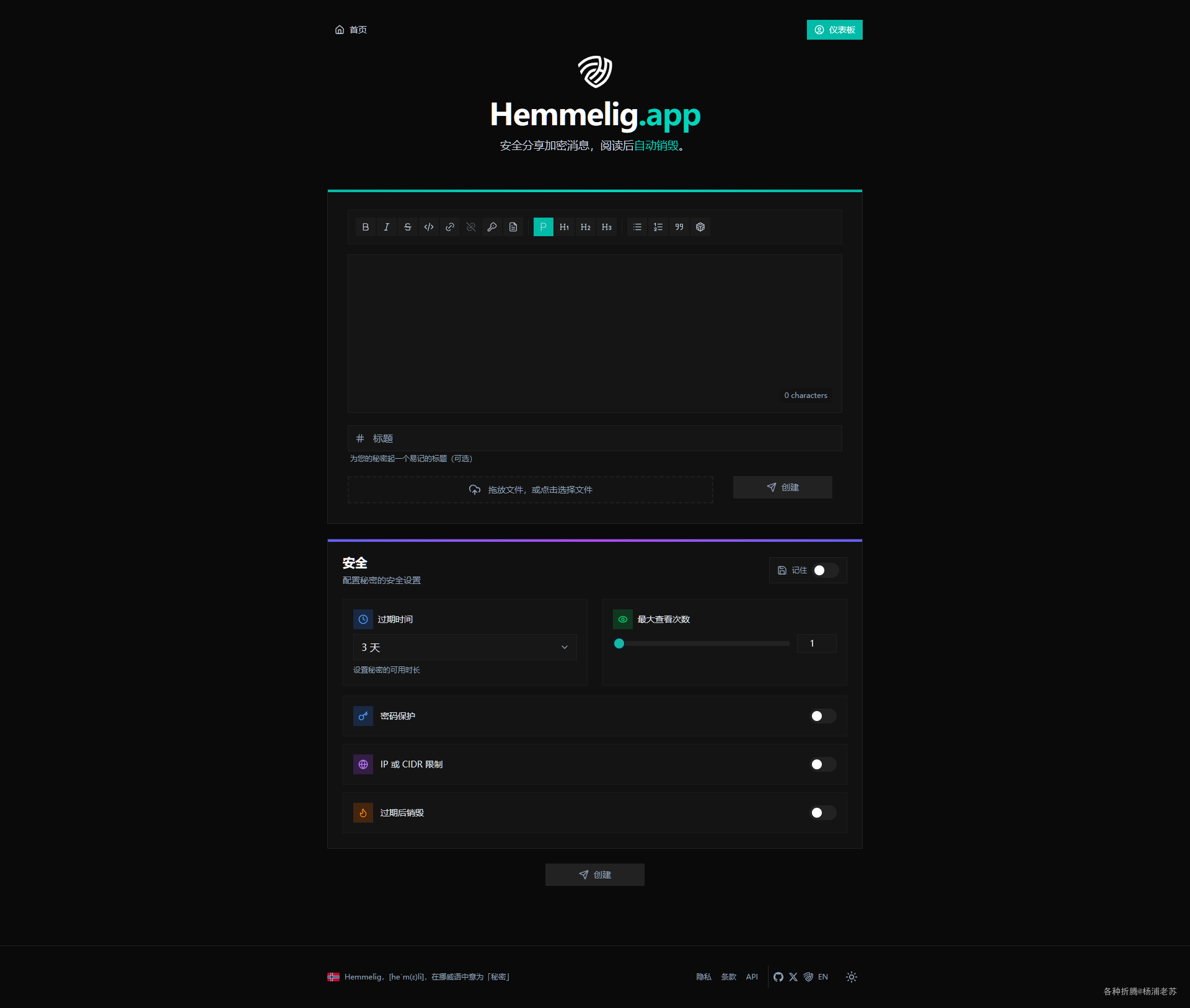 地址:https://github.com/HemmeligOrg/Hemmelig.app