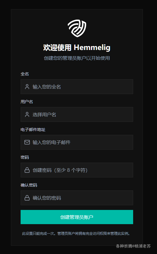 在浏览器中输入 https://hem.laosu.tech 就能看到注册管理员界面