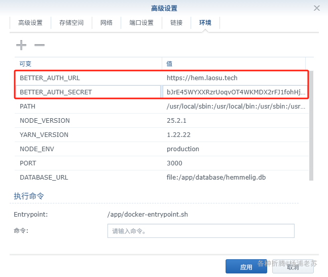 hem.laosu.tech | http://192.168.0.197:3298 | Hemmelig 的访问地址 |