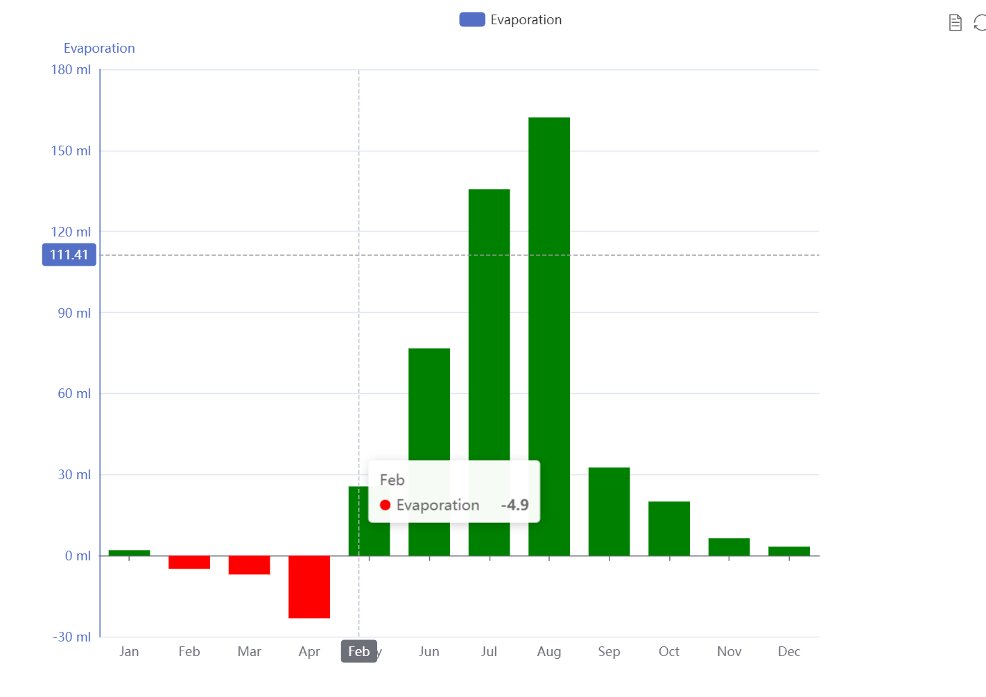 【echarts】柱状图正负值双色 具体方法如下示例:series: [ { name: 'Evaporation', type: 'bar', itemStyle:{ normal: { color: function (params) { //根据数值大小设置相关颜色 if (params.value > 0) { return 'green'