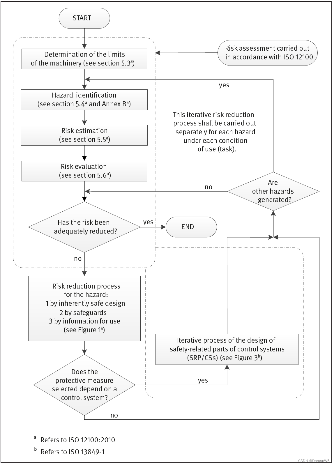 ISO13849功能安全从入门到精通(2):安全功能及其对降低风险的贡献3 必要的安全功能是在考虑到应用和危害的情况下定义的。例如,如果必须预料到飞行碎片,则光幕将是不合适的解决方案,并且需要避雷器(防护装置)。因此,安全功能是一种功能,通过这种功能,各种措施(包括控制技术中的措施)可以将特定危害所带来的风险降低到可接受的水平。在C类标准中没有相关规定的情况下,安全功能由机器的设计者定义,例如:a)有控制地停止运动并在静止位置施加抱闸b)防止机器零件下降造成破碎点c)降低直接暴露眼睛的切割激光的功率d)防止轴在安装模式下掉落。