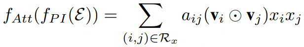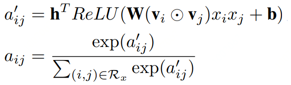 是两个Embedding特征之间的元素积操作;是注意力得分。最简单的方法是使用一个权重参数来表示,但是为了防止特征交叉数据稀疏问题带来的权重参数难以收敛,此处使用单层的全连接网络进行参数学习。