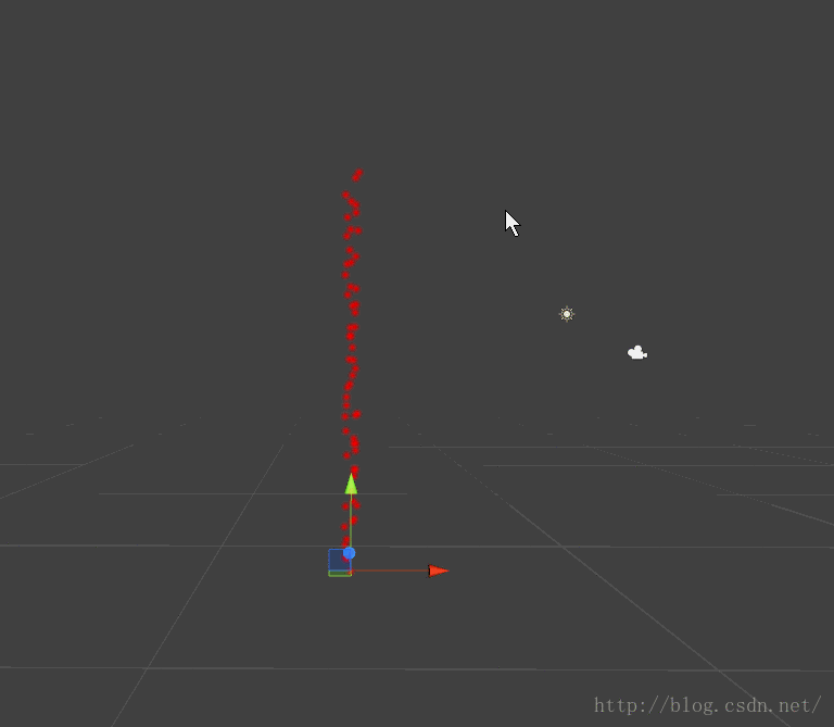 假设一下,如果我们通过一个数组来记录每个粒子的位置,让它们依次遵循直线进行移动,这样粒子会排列成一条直线,会产生这样的运动效果: