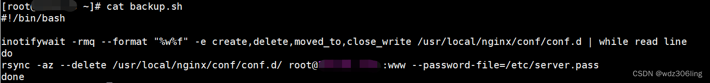 rsync -az --delete /usr/local/nginx/conf/conf.d/ root@192.168.100.13::www --password-file=/etc/server.pass