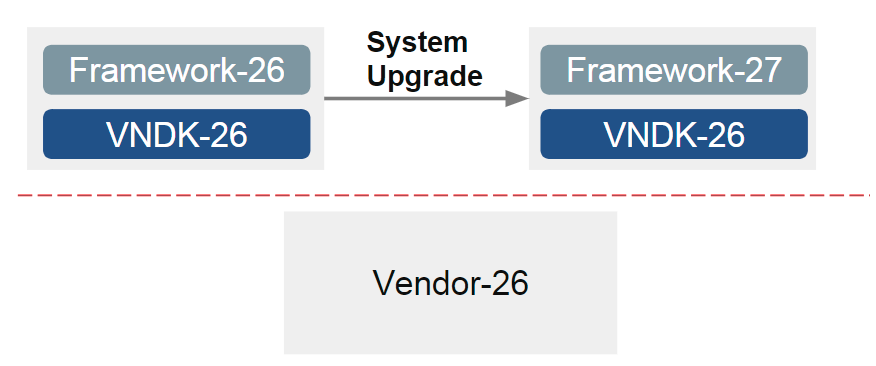假设需要升级版本,采用的 Framework 和 VNDK 版本都是 26,结合上图