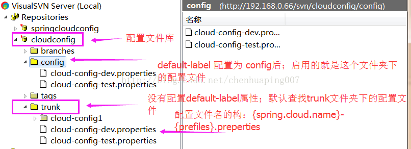 创建svn库后一定要创建一个文件夹;(必须的),不知道是是不是读取库的问题;默认情况下,他会去这你提供的svn库uri中的trunk文件夹下读取(可以配置这个文件夹的名称。配置成空默认去trunk文件夹查找配置文件),配置文件不能放到svn的根目录下(默认去trunk的文件夹下找配置文件);