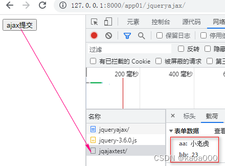 1)$.post(“/app01/jqajaxtest/”,{aa:‘小老虎’,bb:23}) POST方法传递数据,数据在第二个参数位置