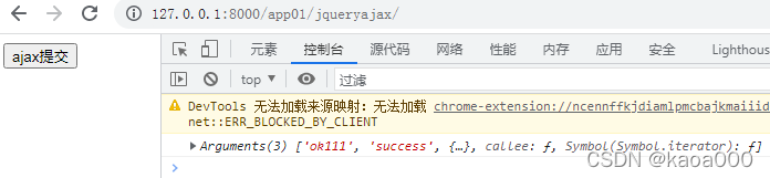 $.post(“/app01/jqajaxtest/”,{aa:‘小花猫’,bb:44},function (data) { console.log(arguments); })