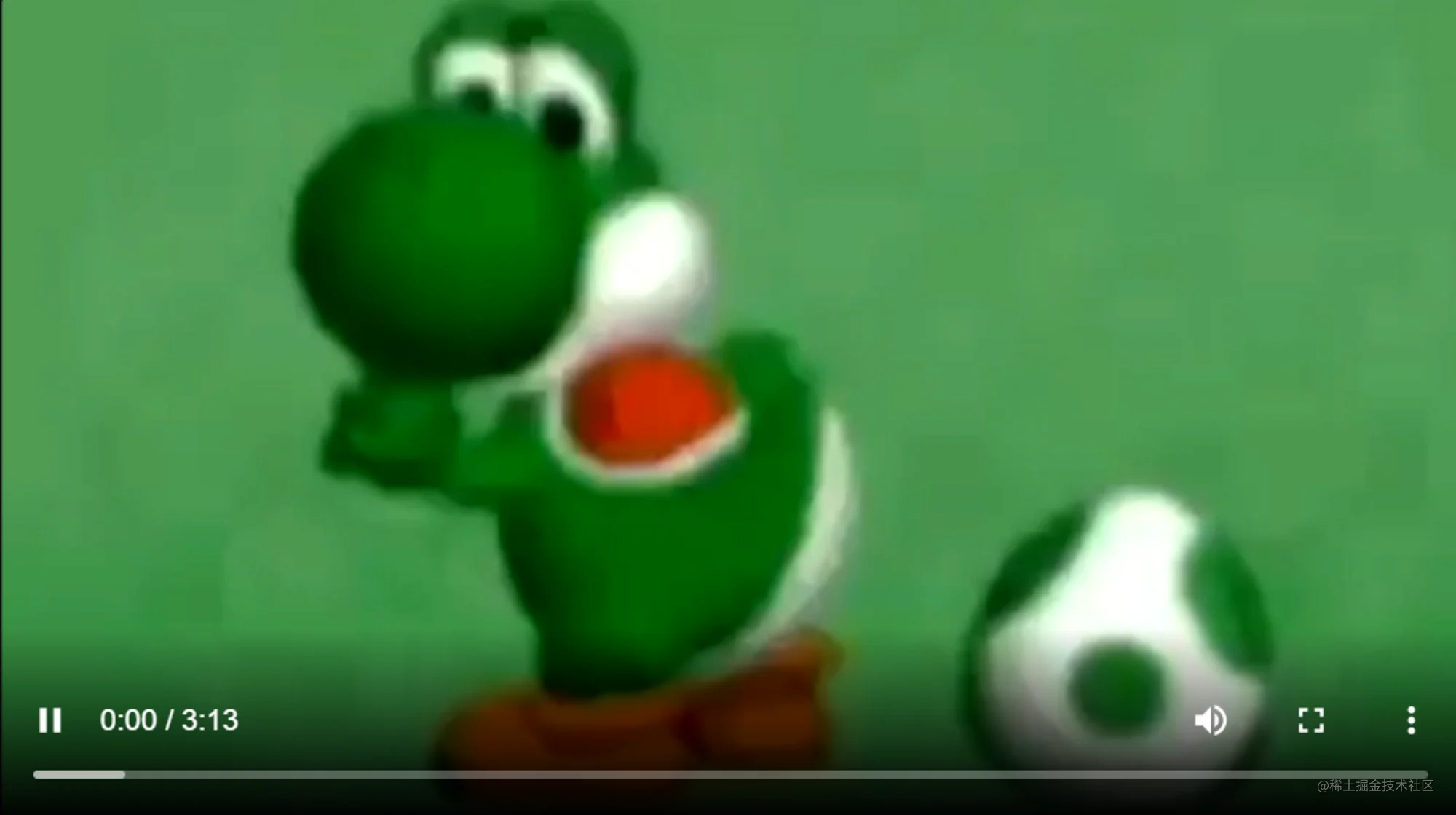 首先,我们直接跳转到`/main.js`文件并删除所有样板代码。其次,打开`/index.html`,在`id`为`#app`的`div`标签内部添加一个`video`元素,上面可以添加你想添加的任意视频文件。这里我使用了一只正在跳舞的耀西。