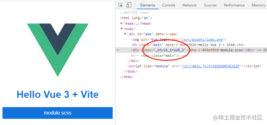 CSS Modules在vite中也是集成的功能,会对文件后缀带有.module的样式文件自动应用CSS Modules,如下