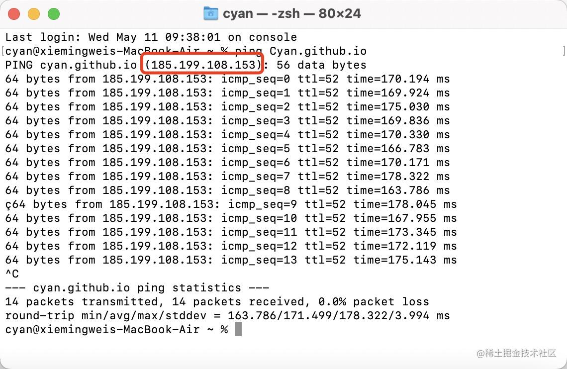 ping Cyan-Xmw.github.io#ping + 你的GitHub的网址