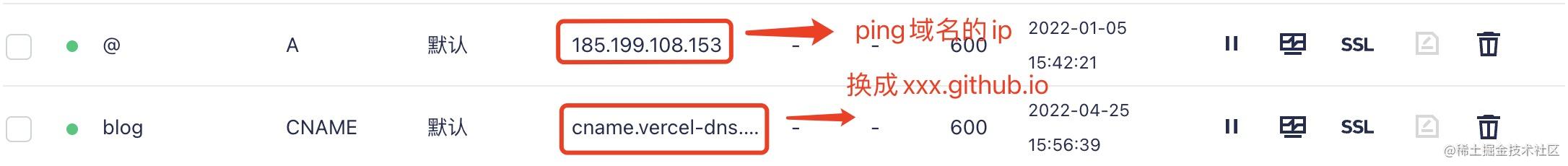 1.登录域名平台,这里以腾讯云为例,进入域名 控制台,进入到域名解析页面,增加两条解析记录: