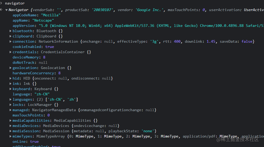 可以把他理解为浏览器系统信息大集合