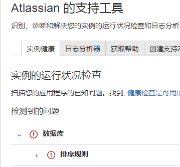 根据提供的解决链接:https://confluence.atlassian.com/jirakb/health-check-database-collation-790955315.html