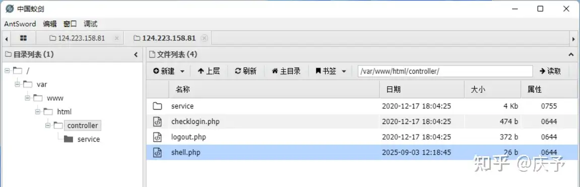 上传之后我们可以看一下目录结构,logout是在controller里的,所以我们传的shell.php路径应该是: