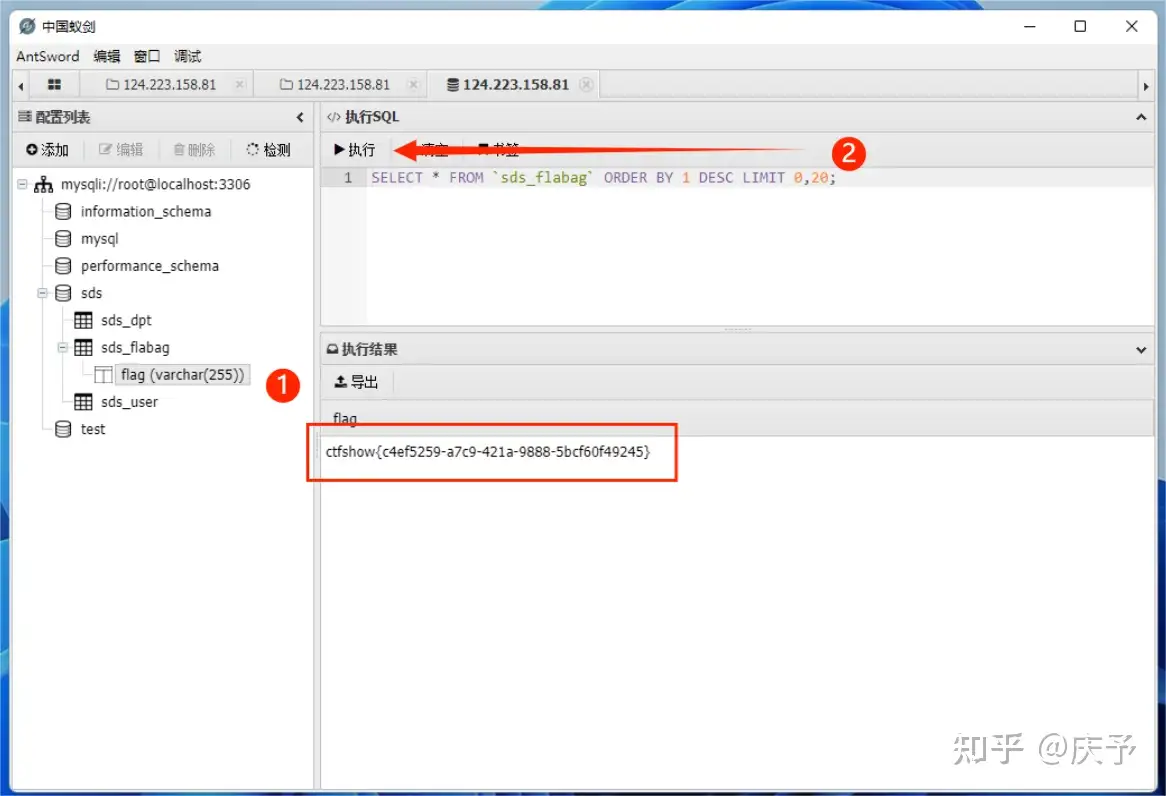 可以看到里面有一个-uroot -proot,应该是账号密码,我们返回去右键点击”数据操作”