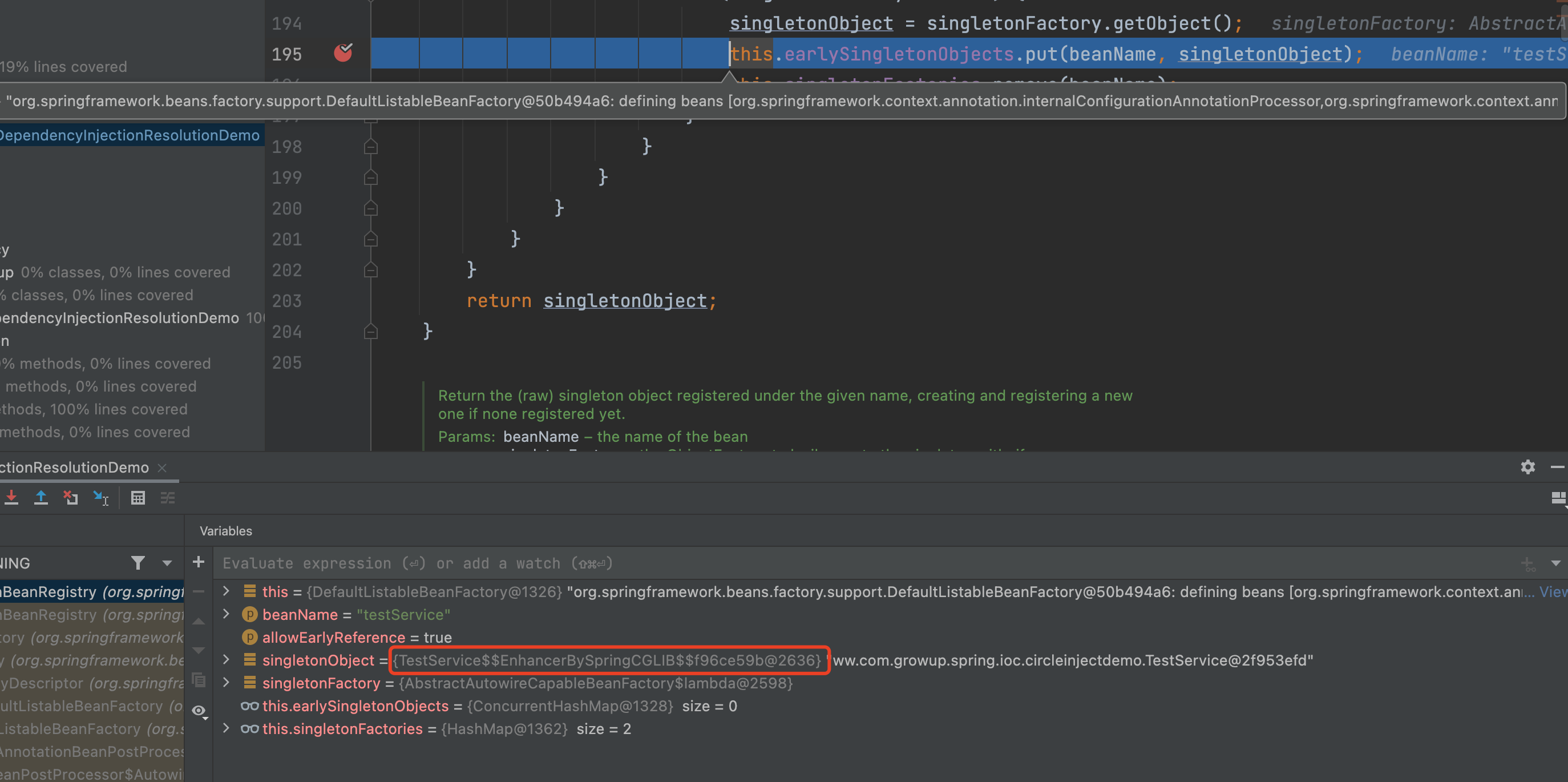 singletonObject = singletonFactory.getObject();