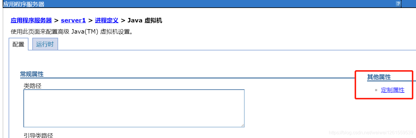 服务器 > 服务器类型 > WebSphere 应用程序服务器 > server_name,然后在“服务器基础结构”下面单击 Java 和进程管理 > 进程定义 > Java 虚拟机 > 定制属性