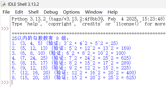 # 找出25以内的勾股数