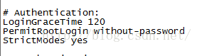 我们可以看到,这几行默认不允许root登录SSH,所以我们要进行相应设置,替换为如下: