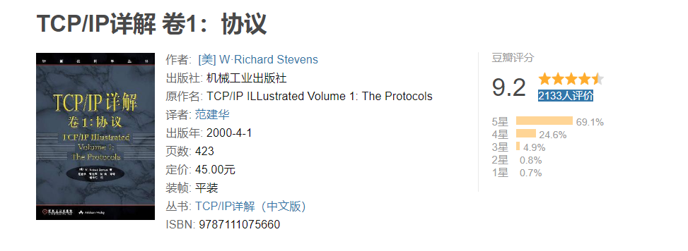 ❝《TCP/IP详解卷1:协议》是一本完整而详细的TCP/IP协议指南。描述了属于每一层的各个协议以及它们如何在不同操作系统中运行。适合作为计算机专业学生学习网络的教材和教师参考书,也适用于研究网络的技术人员。
