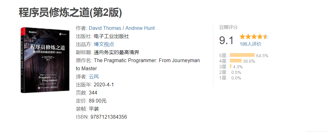 ❝《程序员修炼之道》之所以在全球范围内广泛传播,被一代代开发者奉为圭臬,盖因它可以创造出真正的价值:或编写出更好的软件,或探究出编程的本质,而所有收获均不依赖于特定语言、框架和方法。