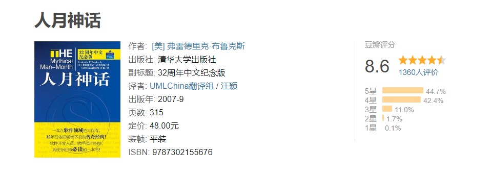 ❝在软件领域,很少能有像《人月神话》一样具有深远影响力和畅销不衰的著作。Brooks博士为人们管理复杂项目提供了最具洞察力的见解,既有很多发人深省的观点,又有大量软件工程的实践。