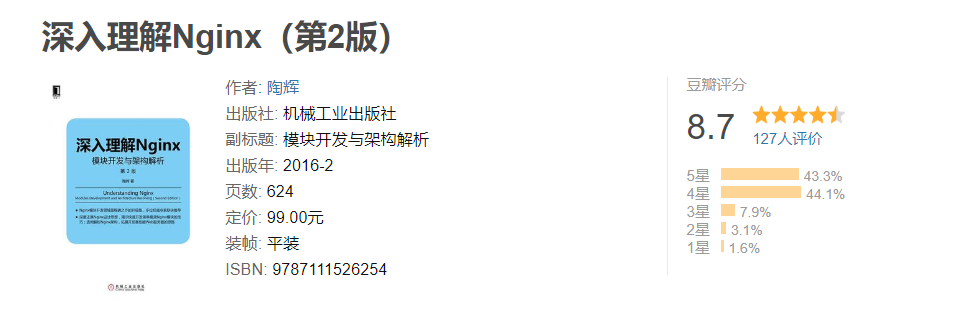 好书是好书,但是有费咖啡,除了讲解nginx,还深入详解其相关知识。