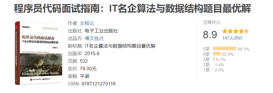 ❝本书系统整理基础知识、代码质量、解题思路、优化效率和综合能力这5个面试要点,适合即将走向工作岗位的大学生阅读,也适合作为正在应聘软件行业的相关就业人员和计算机爱好者的参考书。