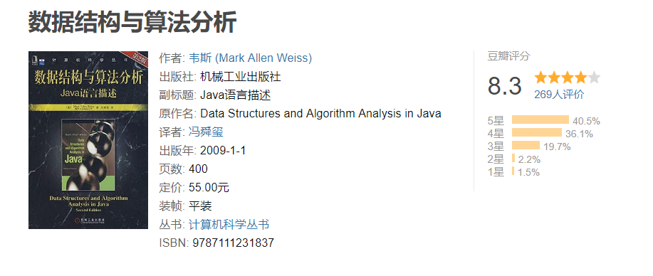 ❝本书是国外数据结构与算法分析方面的经典教材,使用卓越的Java编程语言作为实现工具讨论了数据结构(组织大量数据的方法)和算法分析(对算法运行时间的估计)。