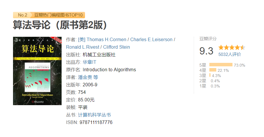 ❝这本书深入浅出,全面地介绍了计算机算法。对每一个算法的分析既易于理解又十分有趣,并保持了数学严谨性。本书的设计目标全面,适用于多种用途。