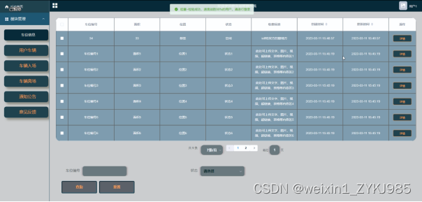 用户执行车位信息,并可以操作相关内容,例如查看,编辑。车位信息的添加操作是建立在车位信息的列表基础上,单击查看车位信息下的车位信息链接;然后单击“车位信息”进行添加,添加成功后的信息会载入到车位信息查询列表中。