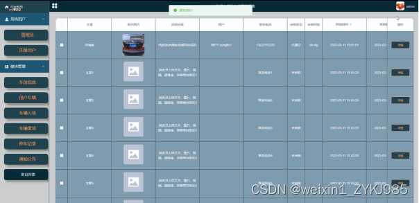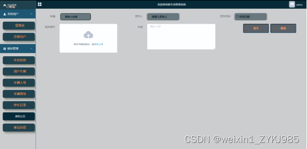 管理员执行车位信息管理,并可以操作相关内容,例如添加,查看,编辑和删除。通过单击“添加车位信息”,可以通过车位信息添加界面添加详细信息并添加车位信息注释。单击查看字段级别链接以查看有关所选字段级别的信息。然后单击“提交”跳转重返到添加页面。添加成功后的信息会载入到车位信息查询列表中,管理员可进行编辑以及修改。