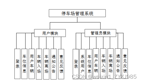 系统架构图属于系统设计阶段,系统架构图只是这个阶段一个产物,系统的总体架构决定了整个系统的模式,是系统的基础。停车场管理系统的整体结构设计如图4-2所示。
