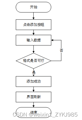 管理员可以对旅游数据管理进行信息的添加,用户可以对自己权限内的信息进行添加,输入信息后,系统会自行验证输入的信息和数据,若信息正确,会将其添加到数据库内,若信息有误,则会提示重新输入信息,添加信息流程如图3-4所示。