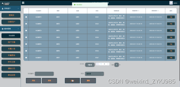 已完成用户车辆的用户通过登录系统后点击“用户车辆”,便可以查看用户的车辆信息,导入文档。