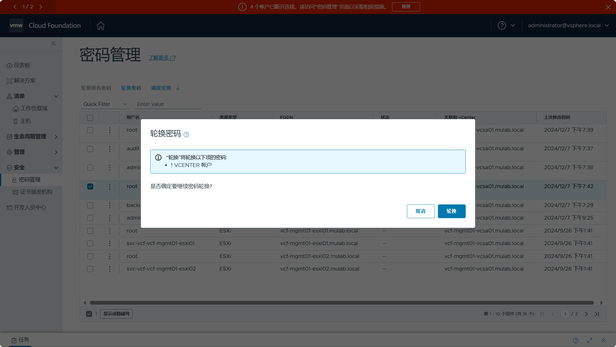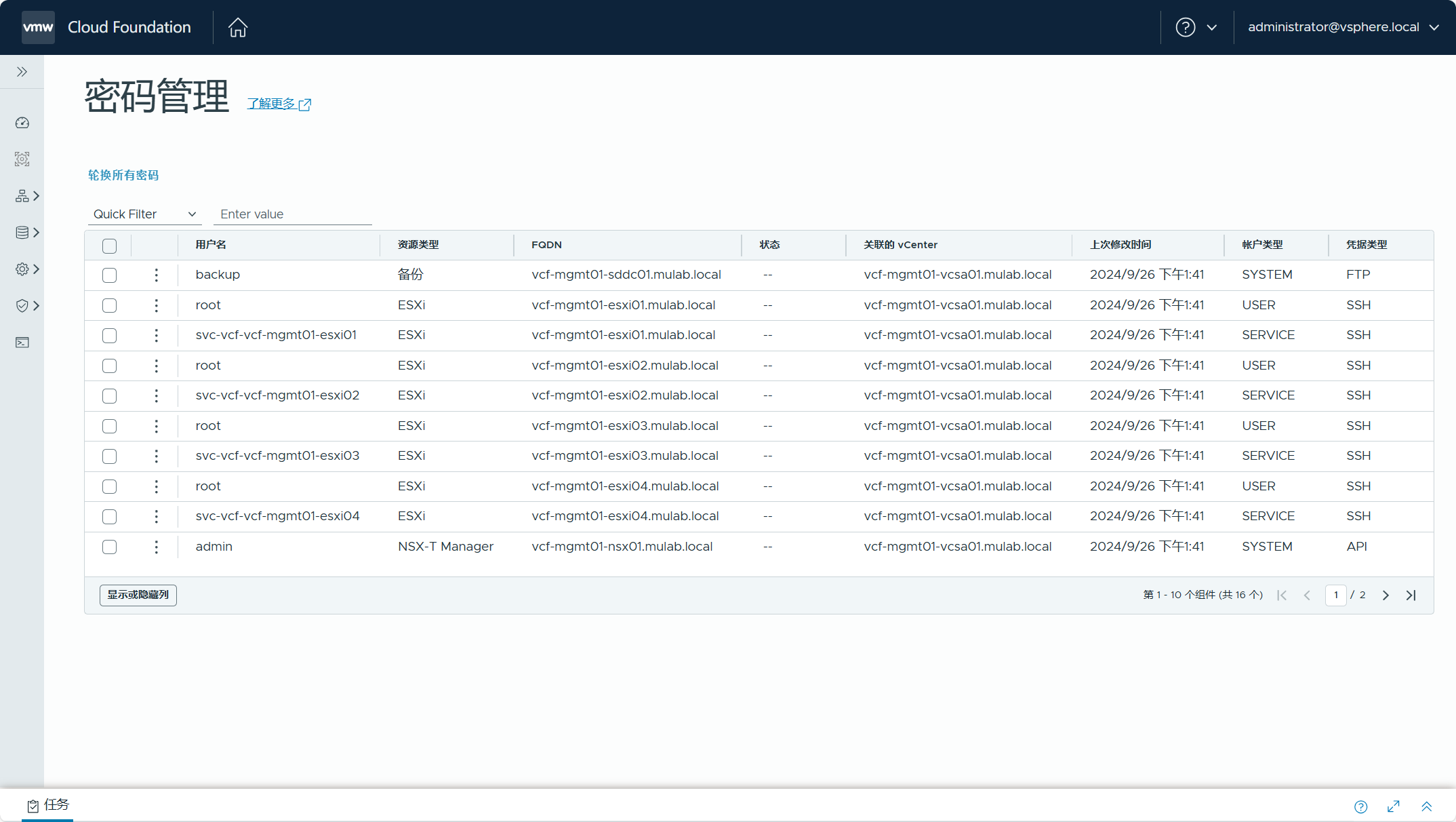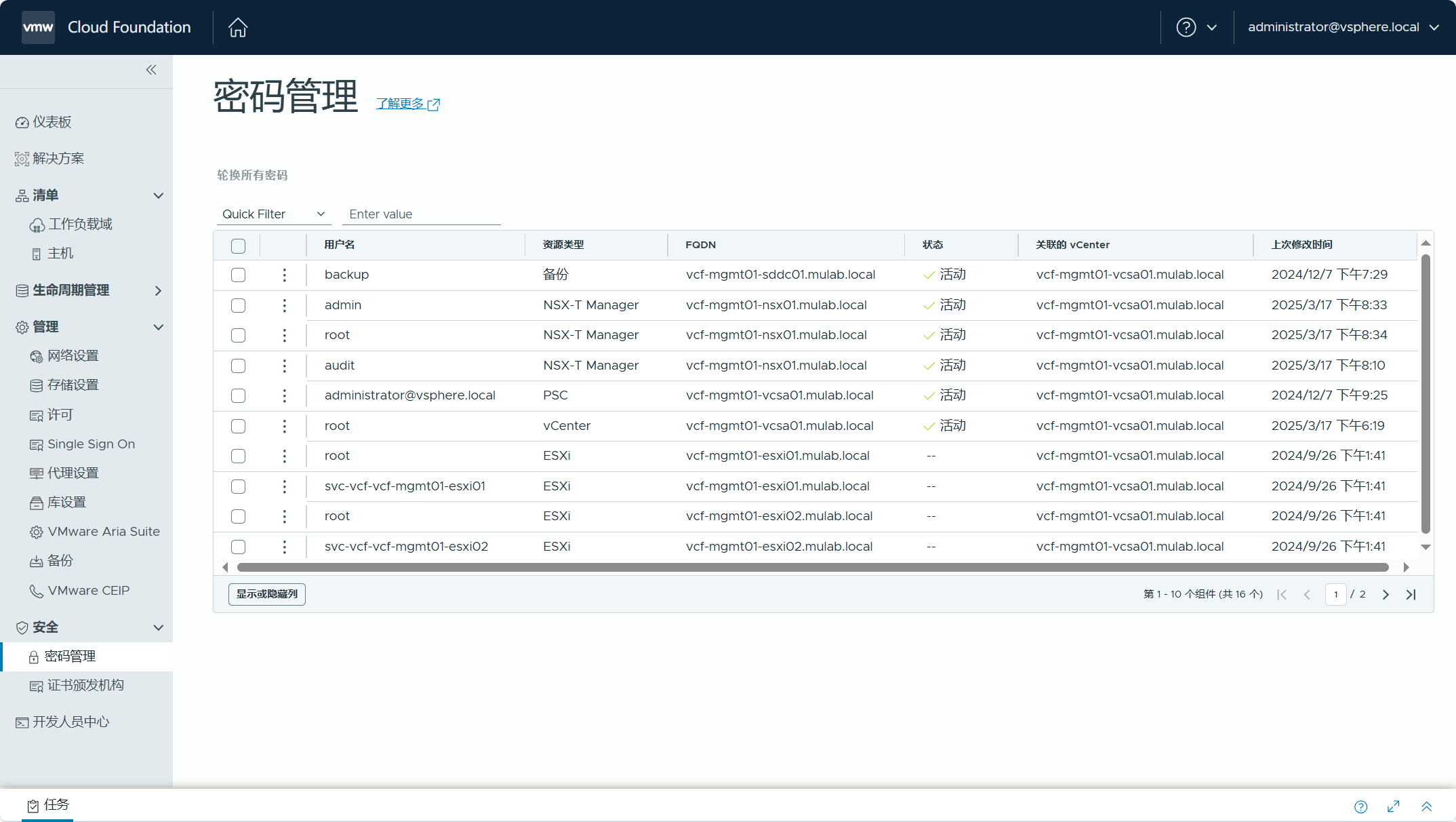 之前都是在正常情况下,再去管理 VCF 组件用户密码,现在正好趁这个机会,看看当 VCF 组件密码已经出现过期后,该如何进行解决。