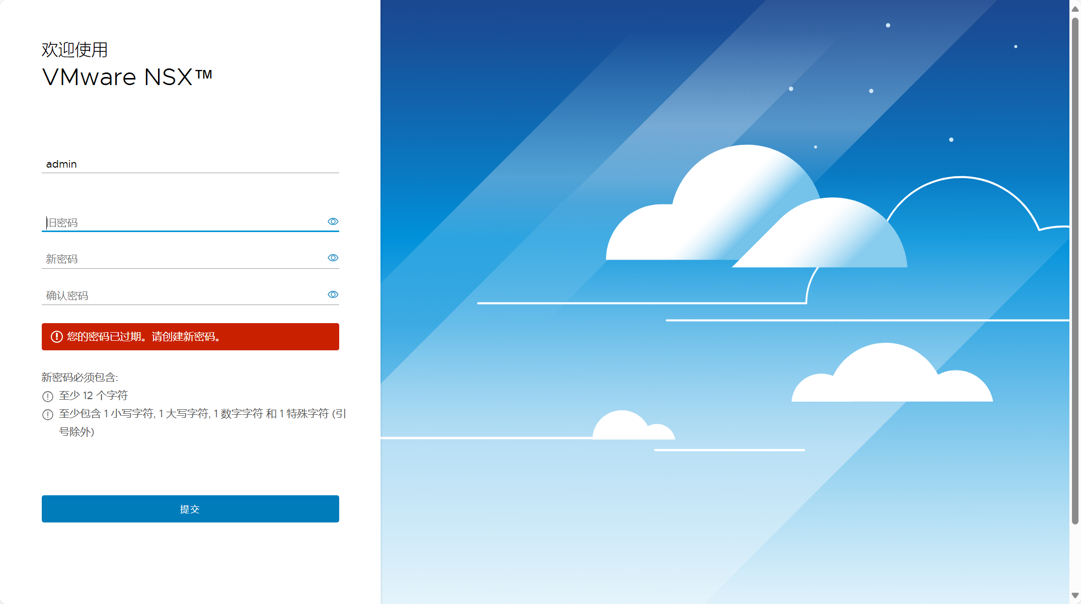 如果你尝试登录 VCF 管理域 NSX Manager VIP 管理界面,并尝试使用 admin 用户登录,结果显示您的密码已过期。