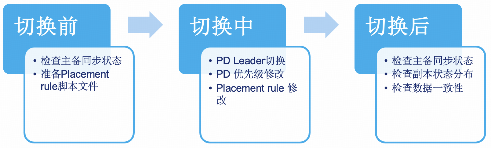 记一次dr_auto_sync计划内的切换测试过程 作者: paulli 一、背景TiDB作为一款开源的分布式关系型数据库,提供了强大的数据同步和容灾能力,其中dr_auto_sync功能允许数据库在预定的时间或条件下自动从主数据中心切换到从数据中心,保证服务的连续性和数据的一致性。本文将记录一次TiDB dr_auto_sync计划内的切换测试过程。 二、测试环境T...