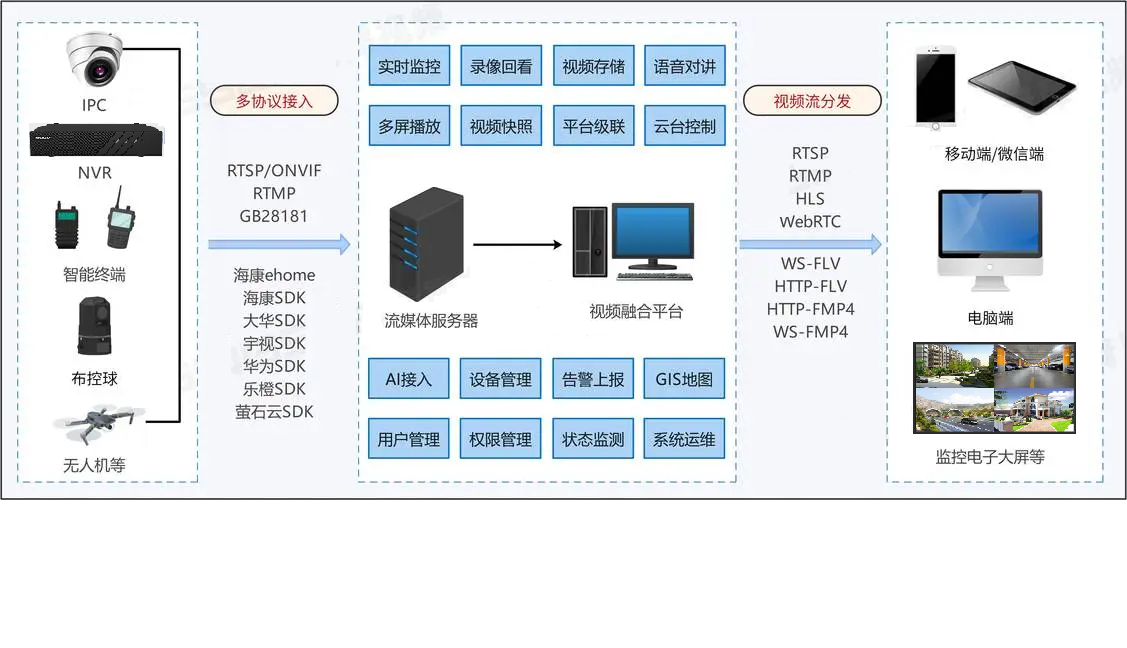 视频监控平台Liveweb视频监控汇聚管理平台解决方案和接入方式 视频汇聚与融合赋能平台Liveweb支持多种协议(GB28181/Onvif/RTSP/RTMP/海康SDK/Ehome/大华SDK/宇视SDK)和设备类型(IPC/NVR/监控平台)的接入。通过统一整合和管理分散在不同品牌、不同协议下的视频资源,实现视频图像资源的一网汇聚,构建视频数据资源池。同时,通过构建视频资源目录,...