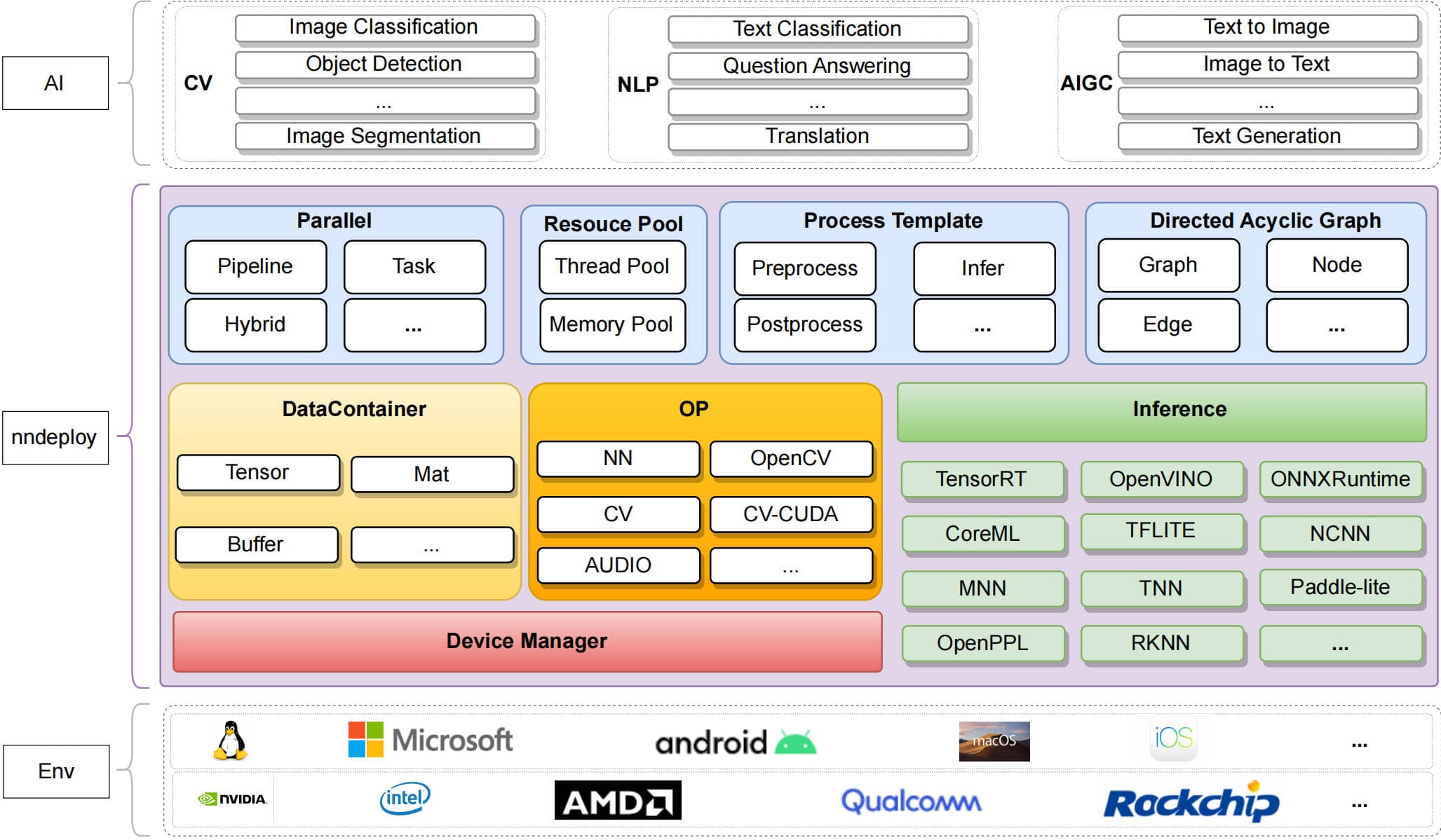 30、nndeploy:简单易用的多端 AI 推理部署框架。这是一款简单易用、高性能、支持多端的 AI 推理部署框架。它基于有向无环图设计,将前处理、推理和后处理抽象为图的节点,支持流水线并行、任务并行等优化方式。兼容 TensorRT、OpenVINO、MNN 等多种推理后端,适配主流文生图、大语言、检测等模型,实现一套代码多端部署。来自 @Always 的分享