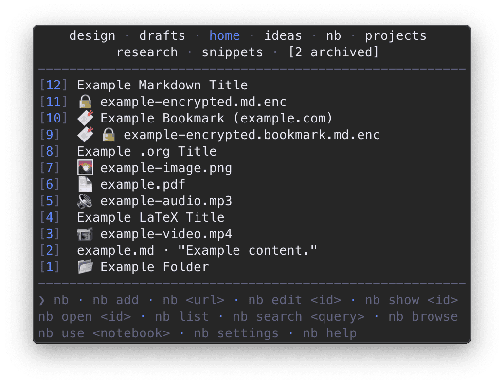 39、nb:命令行笔记和书签管理工具。这是一款极简的命令行笔记、书签和知识库管理工具,支持多种文件格式(Markdown、Org、LaTeX、AsciiDoc),并集成加密、版本控制(同步)、搜索、标签管理等功能。来自 @DeShuiYu 的分享