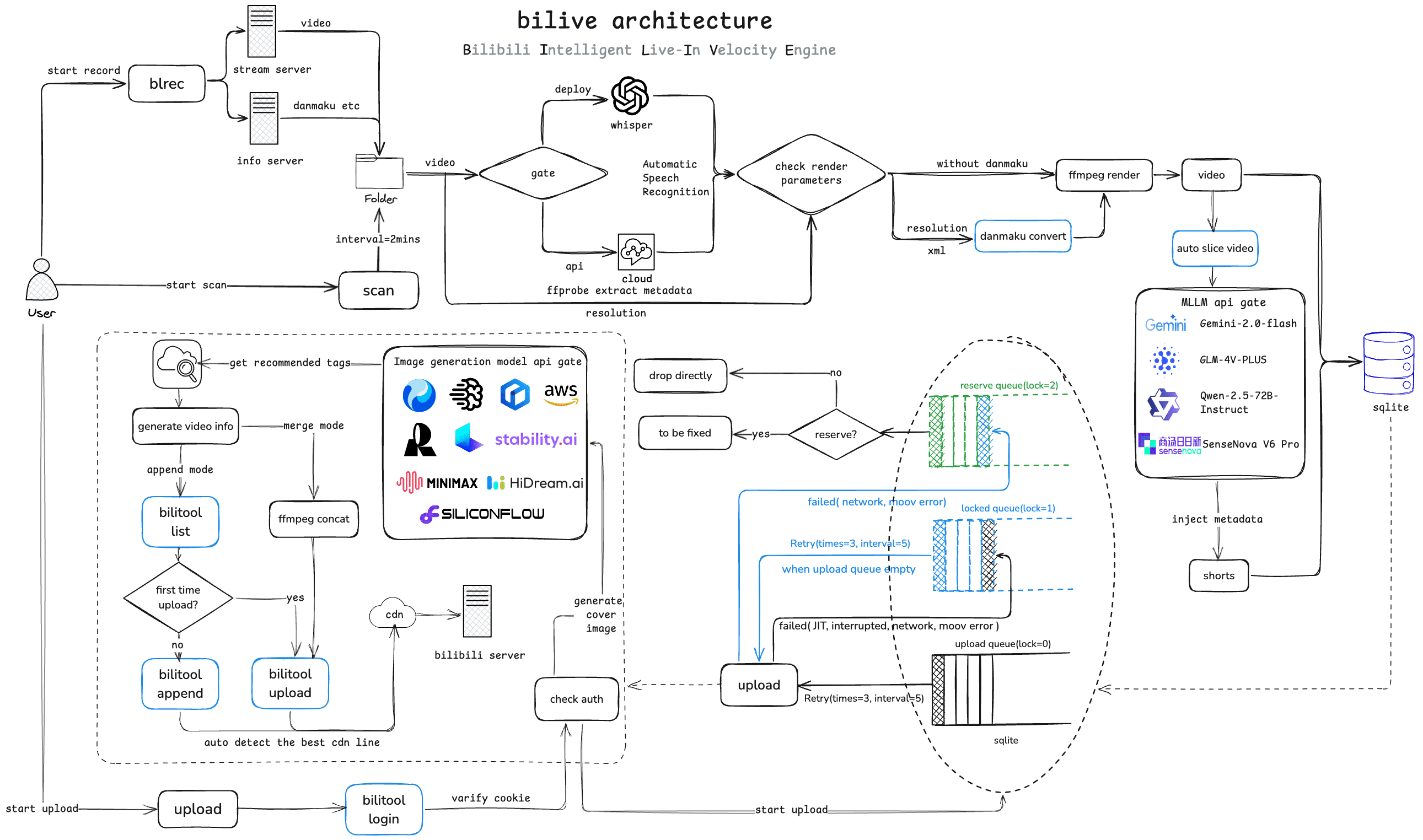 21、bilive:一站式 B 站直播录制与切片工具。这是一款 B 站直播录制工具,支持自动录制、切片、弹幕渲染与投稿。它速度快、占用少、硬件要求低,通过集成语音识别、视频理解、图像生成等模型,实现从录制、切片到上传的全流程自动化。来自 @John Howe 的分享