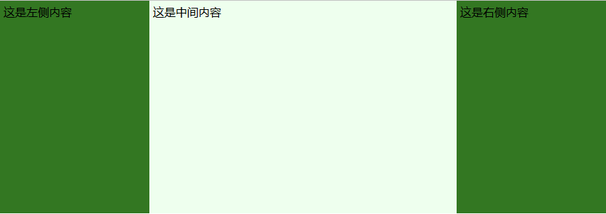 <div class="flex-container"> <div class="item item1">这是左侧内容</div> <div class="item item2">这是中间内容</div> <div class="item item3">这是右侧内容</div> </div>