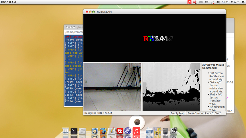 RGB-D-SLAM-V2程序是由F. Endres大大写的。论文见[1]。为什么首先选这个程序呢?因为它的原理在我们前面的博客中介绍过了。它是一个基于深度相机、Pose graph (图优化)的程序,后端用的是g2o。另一方面,它的代码直接兼容 ROS hydro版,基本不用配置就可以运行,非常方便。下面我们一步步地教大家运行这个程序:
