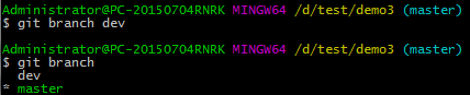 在使用git branch name 创建一个分支时,通过git branch查看分支: